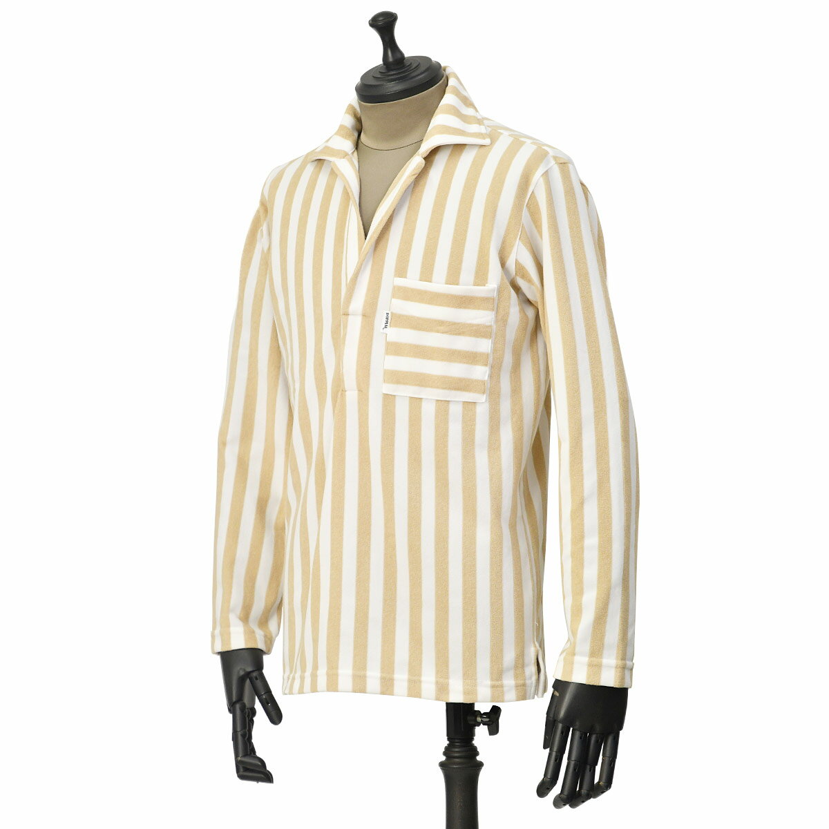 【FINAL SALE】DOPPIAA【ドッピアアー】スキッパーポロシャツ AALICE V4406 0115 BIANCO E BEIGE パイル地 ポリエステル コットン ストライプ ベージュ
