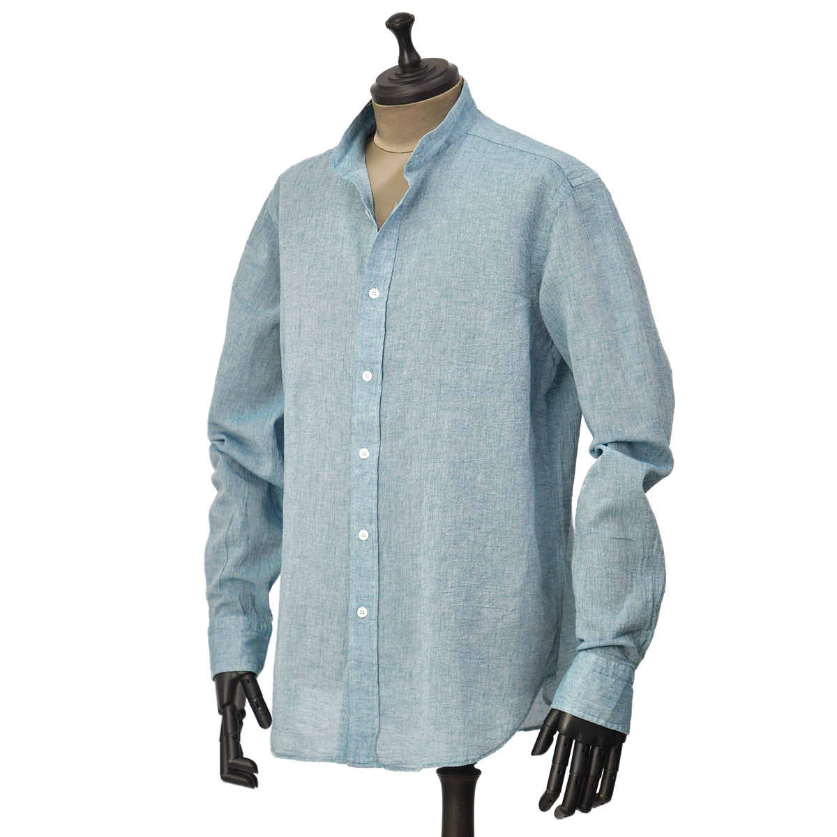 【FINAL SALE】DOPPIAA【ドッピアアー】バンドカラーシャツ AAMIL CARE.L V4420 23 AZZURRO コットン リネン ブルー