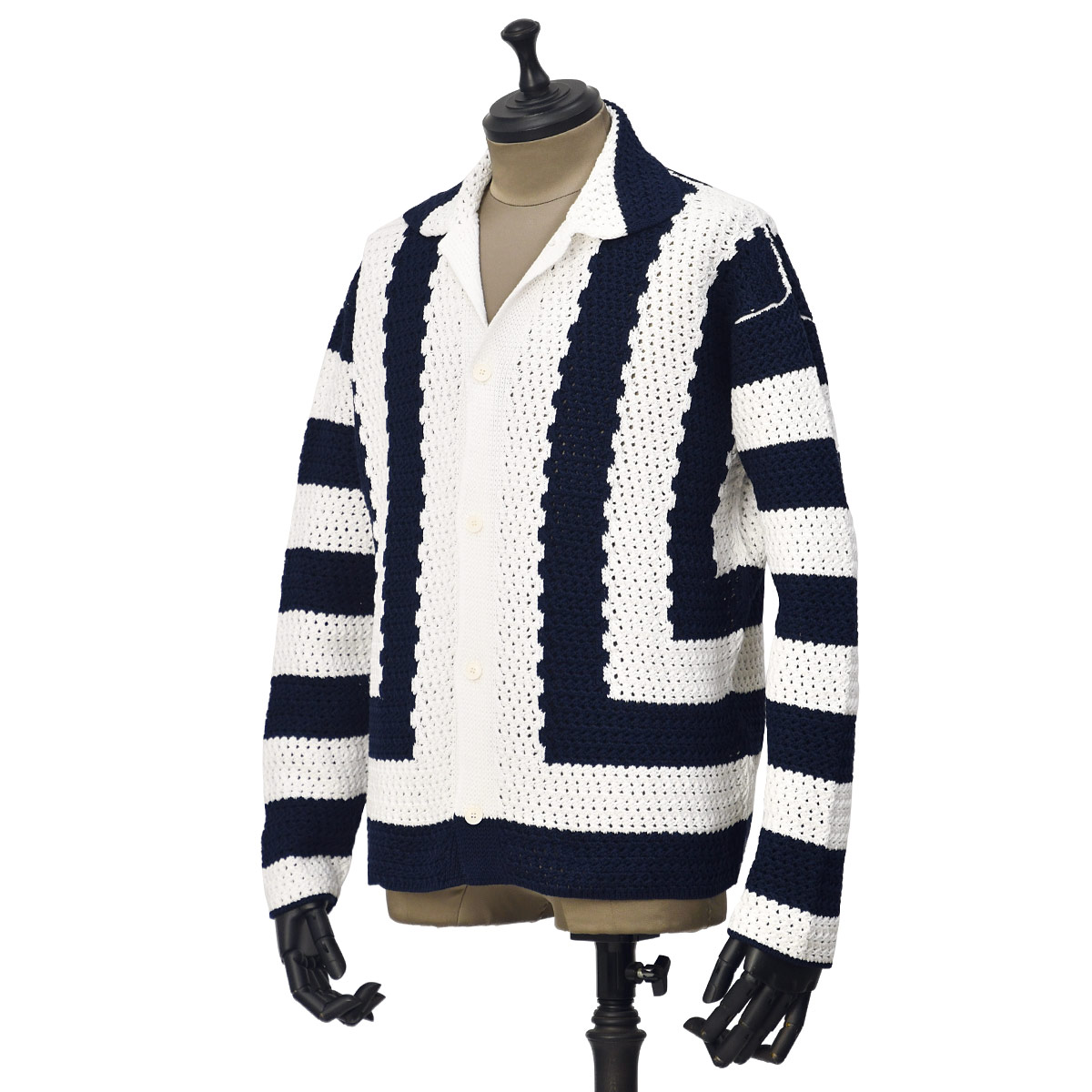 【FINAL SALE】【size46,50】DOPPIAA【ドッピアアー】ニットブルゾン AAREO V5600 2002 BLU MARINE E PANNA コットン ネイビー ホワイト