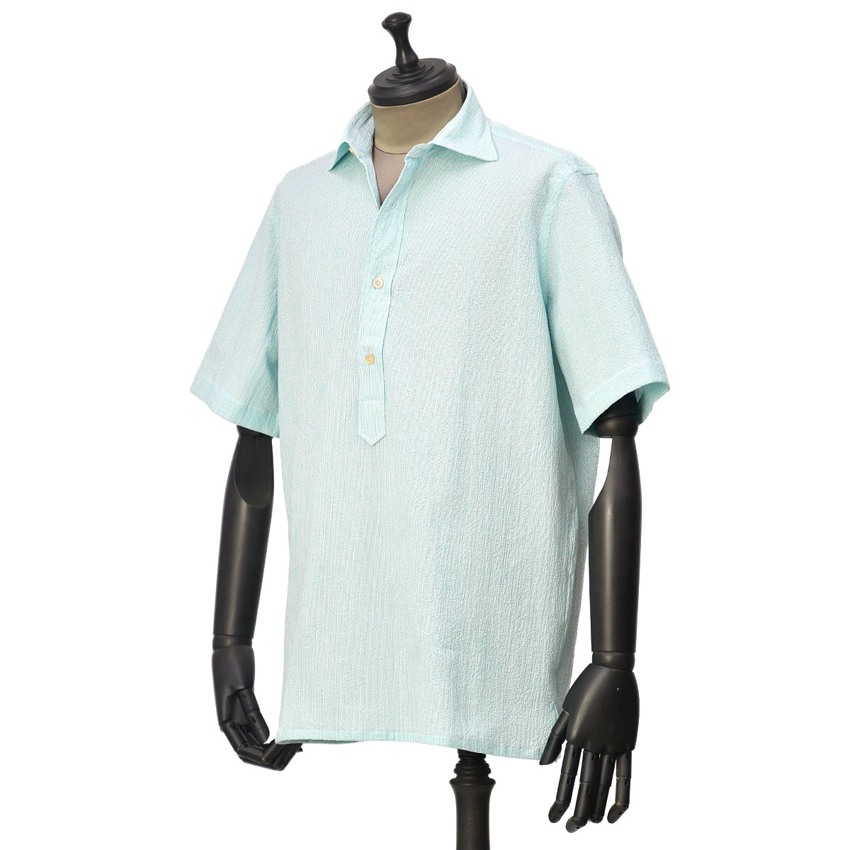 【FINAL SALE】【sizeS,M】ALESSANDRO GHERARDI【アレッサンドロ・ゲラルディ】半袖プルオーバー POLOT4MC 7228 720 シアサッカー ストライプ コットン グリーン