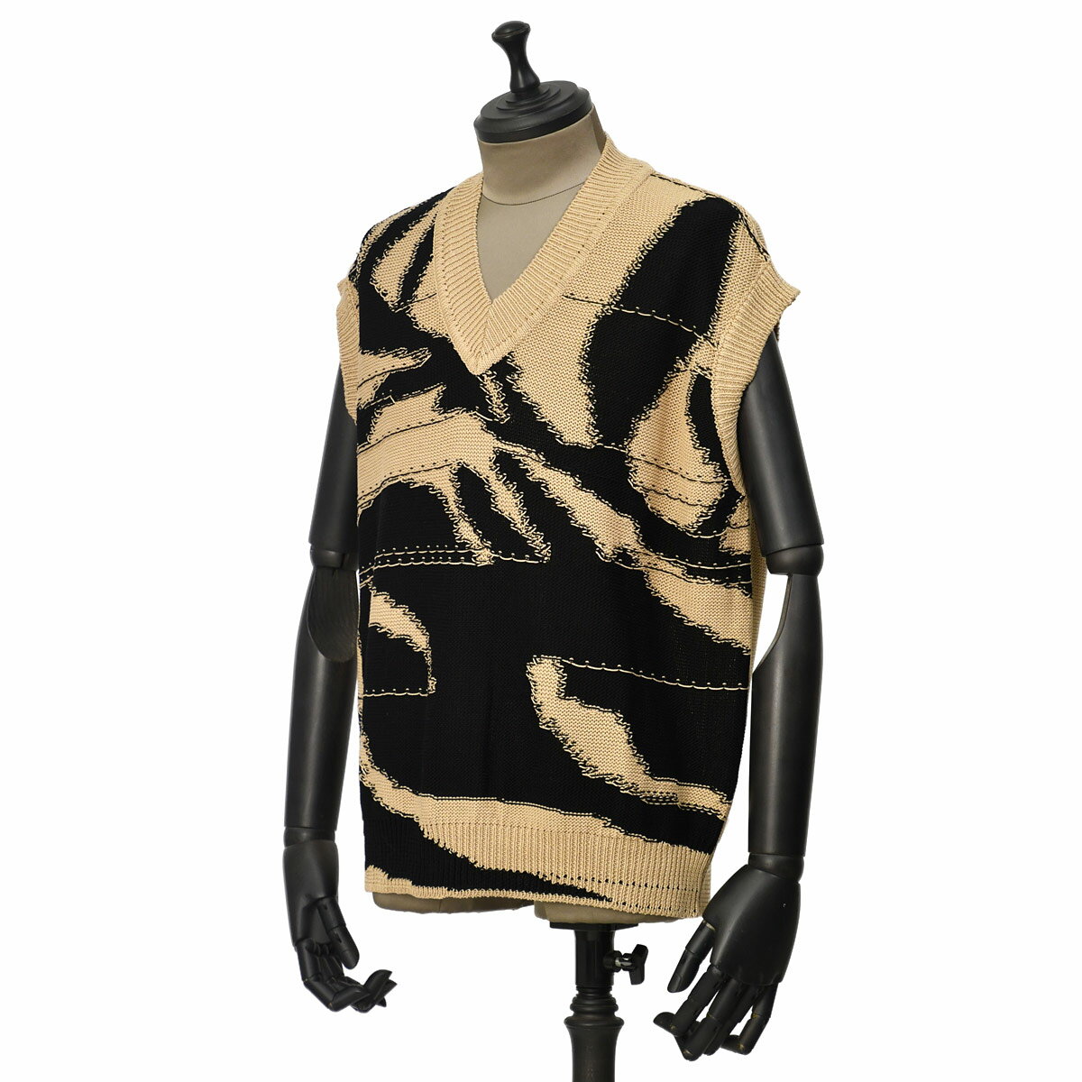 【FINAL SALE】【size48,50】roberto collina【ロベルトコリーナ】ニットベスト RT31032 05 CAMEL NERO コットン キャメル ブラック