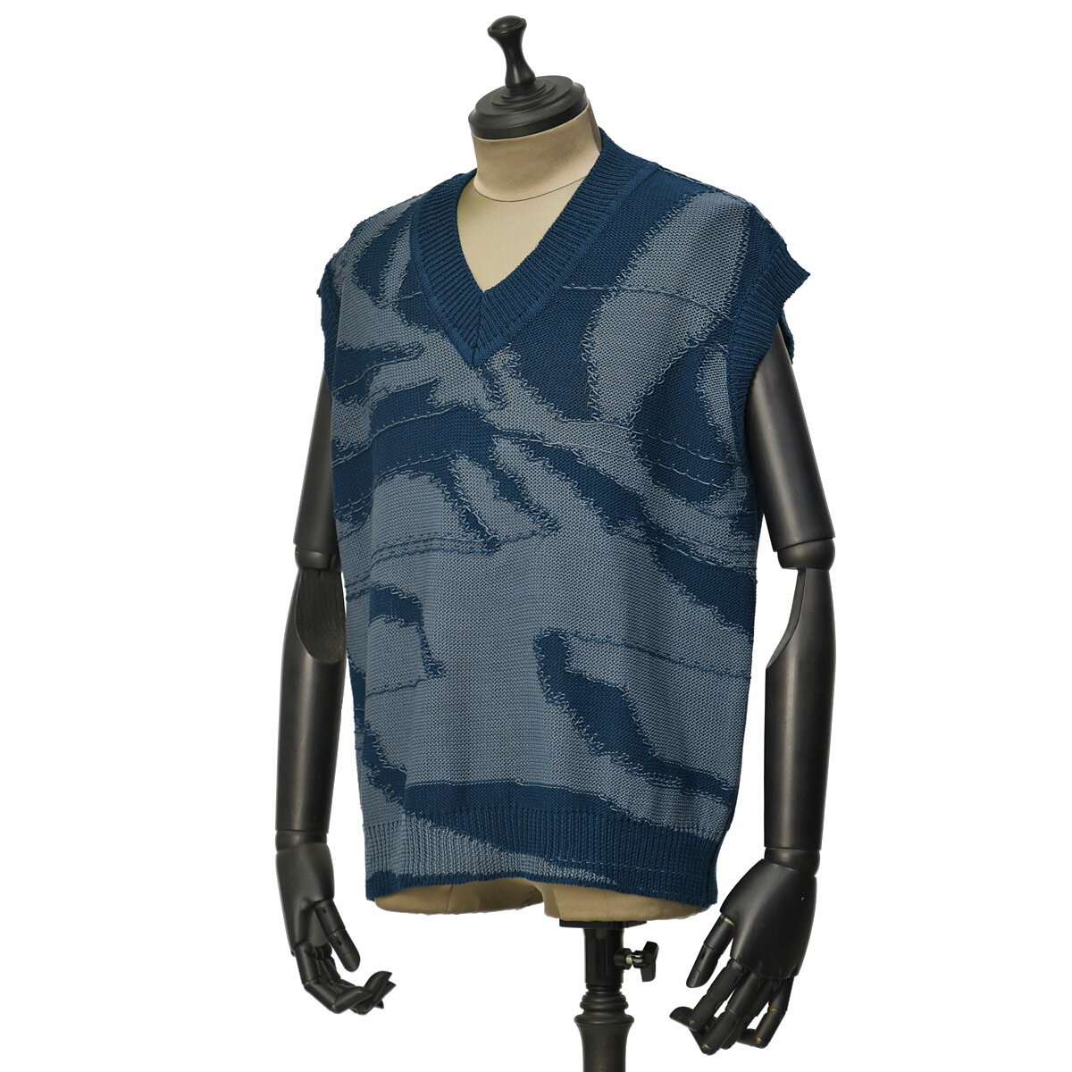 【FINAL SALE】【size44,48】roberto collina【ロベルトコリーナ】ニットベスト RT31032 10 BLU AVIO コットン ネイビー ブルー