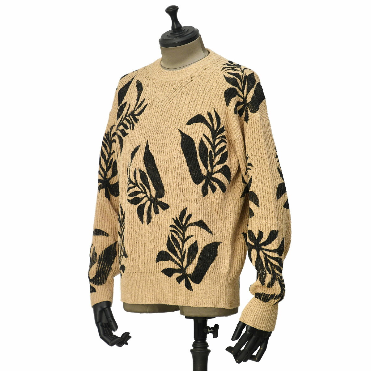 【FINAL SALE】【size48】roberto collina【ロベルトコリーナ】クルーネックニット RT43001 04 SABBIA コットン ボタニカル キャメル ブラック
