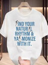 200gで文芸もポジティブです!「FIND YOUR NATURAL RHYTHM & HARMONIZE WITH IT.」と青い文字でプリントさた白い衣装の中に、黒で踊るシンプルなキャラクターがいくつもあしらわれていて、自分のリズムを見つけ、調和のとれた生活を送るというメッセージが込められています。