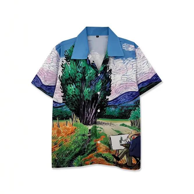 シャツ メンズ 男性 半袖 オープンカラー キューバンカラー プリント柄 ゆったり ビッグシルエット 通気性 吸湿速乾 涼しい ポリエステル カジュアル 夏 リゾート ビーチ 旅行 普段使い