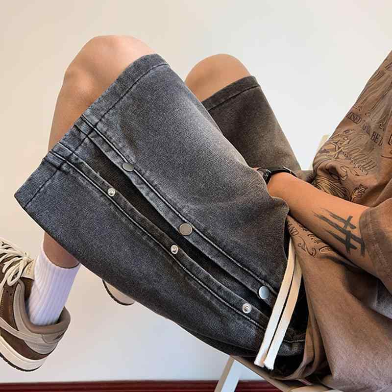 メンズ 服 シンプル ファッション オシャレ 大人 かっこいい 大きいサイズ ストリート 紳士服 アメリカン ボタン デニム パンツ 夏 薄手ミッド パンツ ストリート ウォッシュド 五分丈