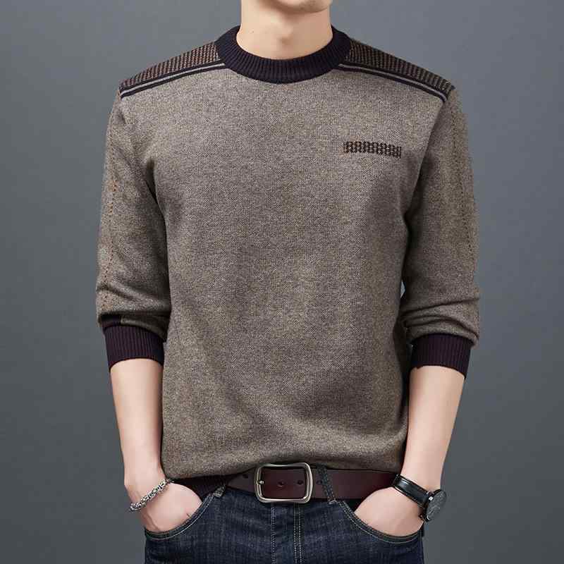 ニット メンズ 男性用 セーター 丸首 長袖 秋冬 暖かい 裏起毛 ゆったりサイズ リブ 普段使い カジュアル