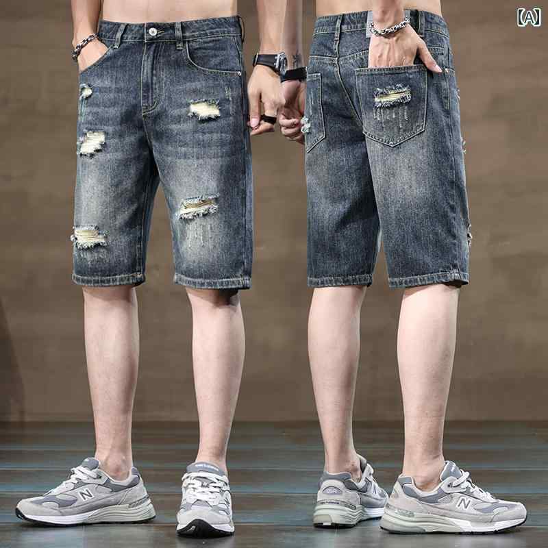 デニム ショートパンツ メンズ メンズ デニムショートパンツ 夏 薄手 ゆったり 5セント パンツ 韓国 リップ ド 弾性 5 セント ミッド