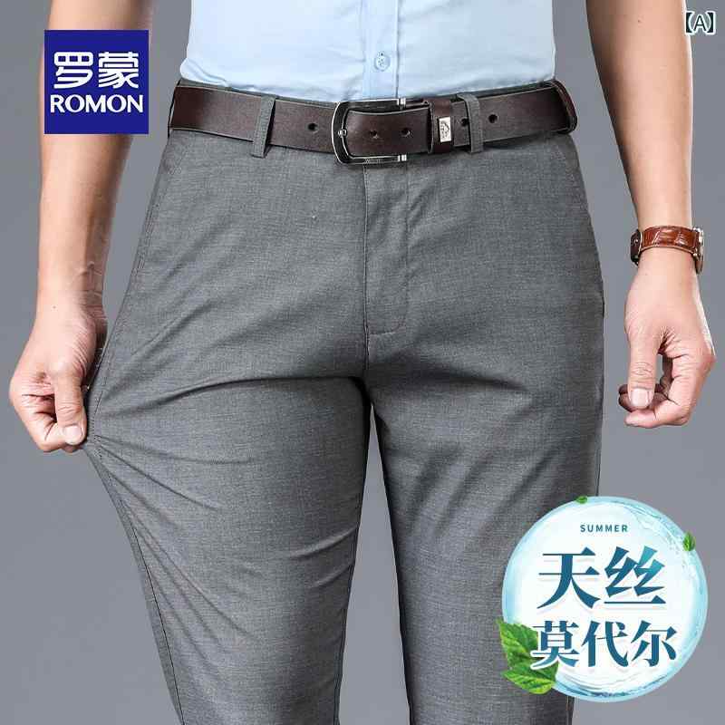 メンズ ズボン 冷感 ロモン 夏 薄手 カジュアル パンツ メンズ ゆったり ストレート メンズパンツ 2025 ズボン ロング