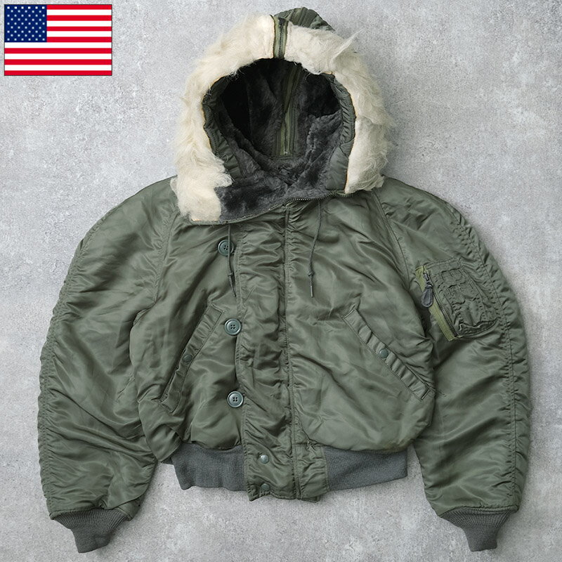 米軍 N-2B フライトジャケット USED アメリカ軍 GI US AIR FORCE エアフォース 空軍 N2B ヘビーゾーン パイロット ショート丈 アウター パーカー ブルゾン 上着 中綿入り 防寒 保温 フード付き カジュアル ナイロン セージ 実物ミリタリー 軍物 軍モノ