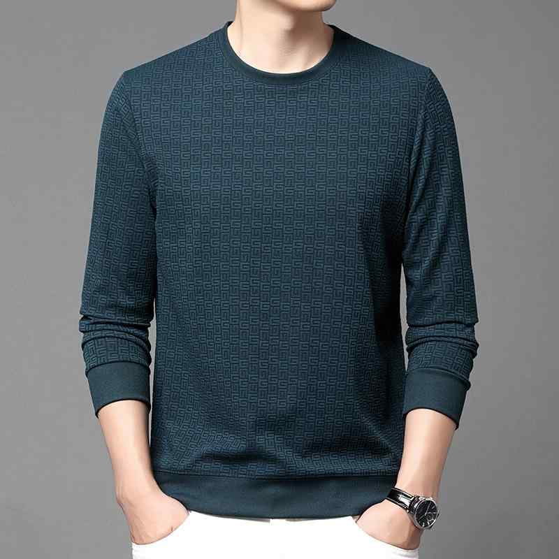中年 綿 ジャカード 長袖Tシャツ メンズ 秋 ラウンドネック スウェットシャツ 中年 お父さん レイヤリングシャツ トップス ソフトタッチ 高品質 アクティブ スタイリッシュ