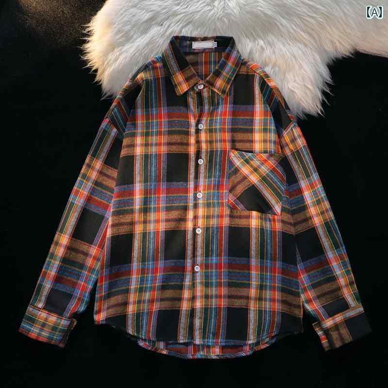 メンズ トップスス シャツ アウター インナー おしゃれ レトロ シンプル チェック 長袖 春秋 ウェア カジュアル ジャケット トレンド
