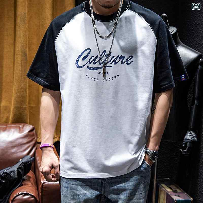 Tシャツ コットン カラーブロック 半袖 シャツ 春夏 メンズ ゆったり アメリカ ファッション 大きいサイズ ボーイズ ラウンドネック レジャー