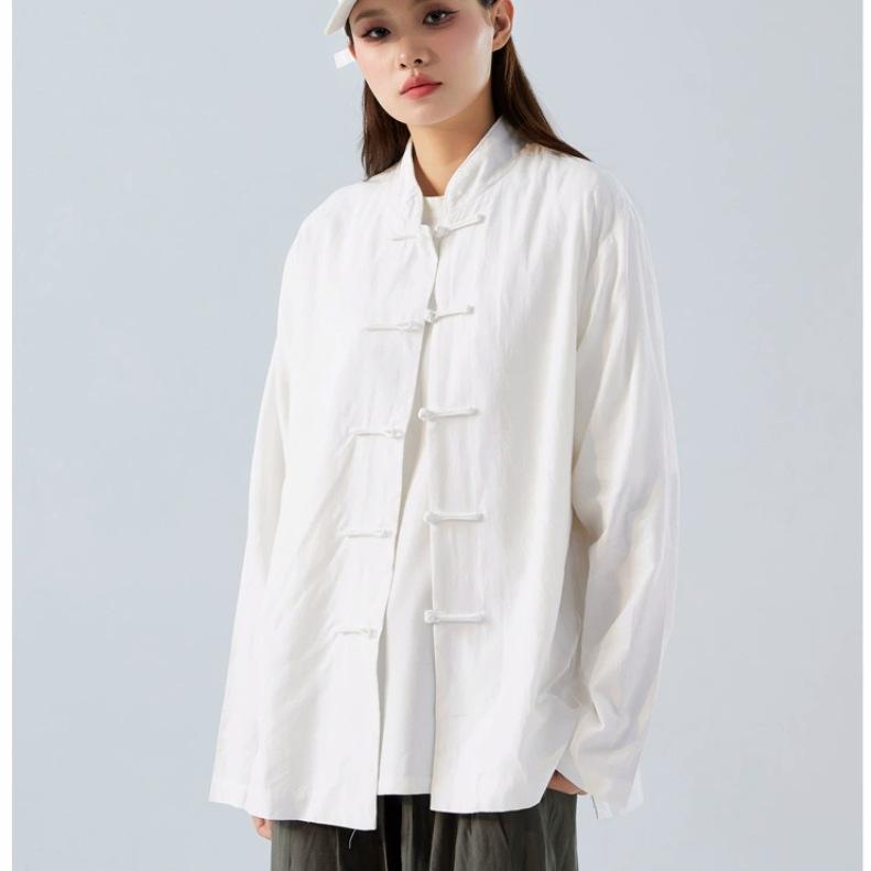 シャツ メンズ 春秋 中華風 レトロ 唐装 スタンドカラー 長袖 盤ボタン ジャカード織り 麻混 コットン 通気性 ゆったり 大きいサイズ カジュアル