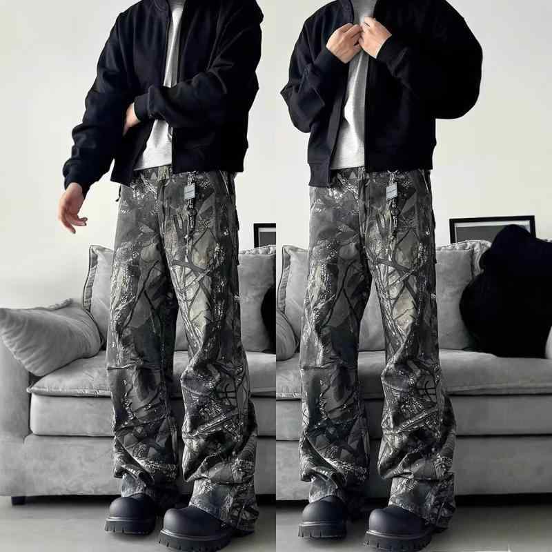 デニム メンズ 迷彩柄 ワークパンツ ストレートパンツ ルーズフィット ジーンズ ウォッシュ加工 ポケット 普段使い カジュアル アメカジ