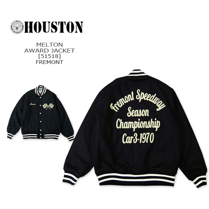 ヒューストン スタジャン メンズ HOUSTON ジャケットMELTON AWARD JACKET FREMONT メルトン アワードジャケット 51518 ウールメルトン 刺繍 ワッペン スタジアムジャンパー MILITARY ミリタリー アメカジ ヴィンテージ 黒 ブラック