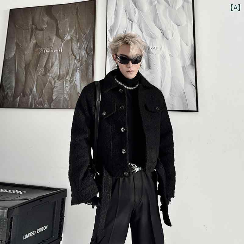 ジャケット メンズ 肩パッド 韓国 おしゃれ 暖かい ショート ウール コート ブラック