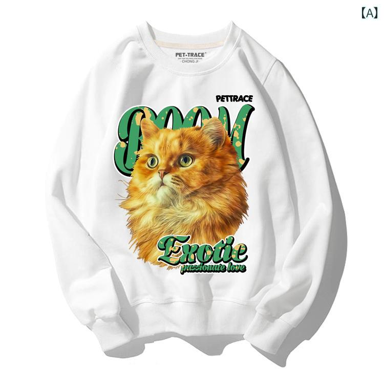 スウェットシャツ 猫 キャットプリント トレーナー ユニセックス カジュアル アウトドア プルオーバー ブラック ホワイト コットン アニマル かわいい 春秋冬 ラウンドネック レディース メンズ 黒 白 綿