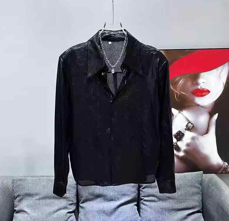 メンズ トップス シアーシャツ アメリカ ロック 個性的 ヘビ革風 デザイン 黒 ブラック 透け感 シャツ カジュアル 薄手 紳士 シースルー セクシー ステージ ダンサー 衣装 シック