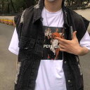 デニムベスト メンズ ノースリーブ ジャケット Gジャン アメリカン 夏 カジュアル ダメージ 韓国 ファッション 大きいサイズ ブラック ブルー