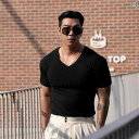 tシャツ メンズ フィットネス 半袖 夏 スポーツ レジャー Vネック ストレッチ性 速乾 韓国 タイト フィット ストライプ ブラック ホワイト