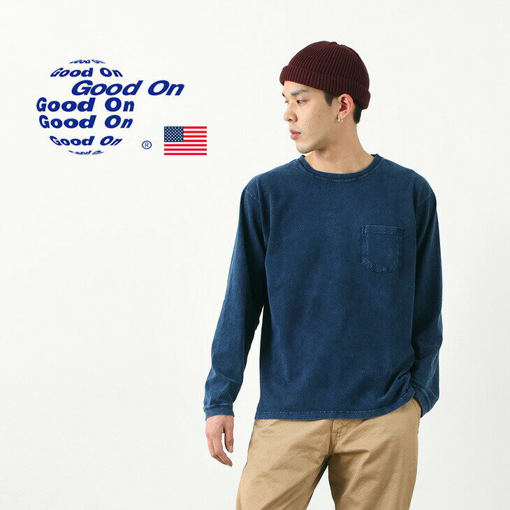 【10%OFFクーポン対象】GOOD ON(グッドオン) ロングスリーブ ポケット クルー Tシャツ / インディゴシェーブ / 長袖 / メンズ / 無地 / ピグメントダイ / アメリカ製生地 / 日本製 / GOLT1306IS