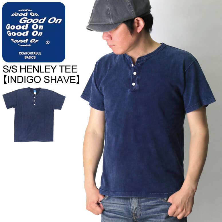 ★期間限定・ポイント15倍商品★ 【送料無料】Good On(グッドオン) ショートスリーブ ヘンリーネック Tシャツ【インディゴ染め】シリーズ Tシャツ カットソー メンズ レディース プレゼント