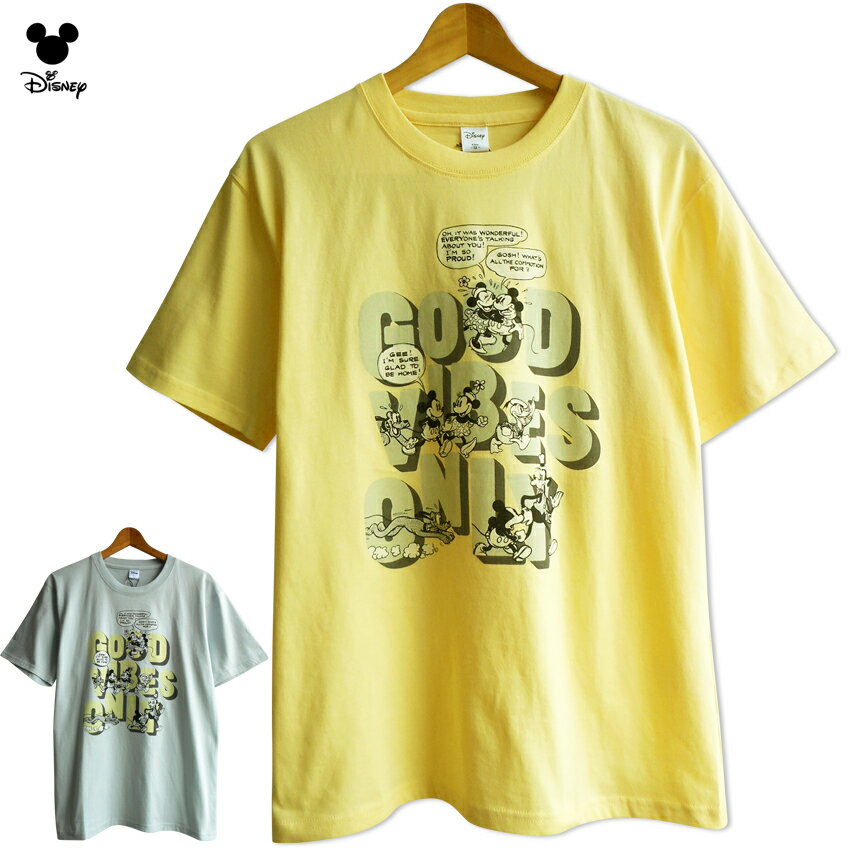 送料無料 ディズニー Tシャツ ミッキーマウス ミッキー ミニー ドナルド グーフィー プルートコミック アメコミ ビッグサイズ good vibes disney レディース メンズ レトロ ペアルック イエロー アイスブルー 黄色 水色 男女兼用 ゆったり ぽっちゃり