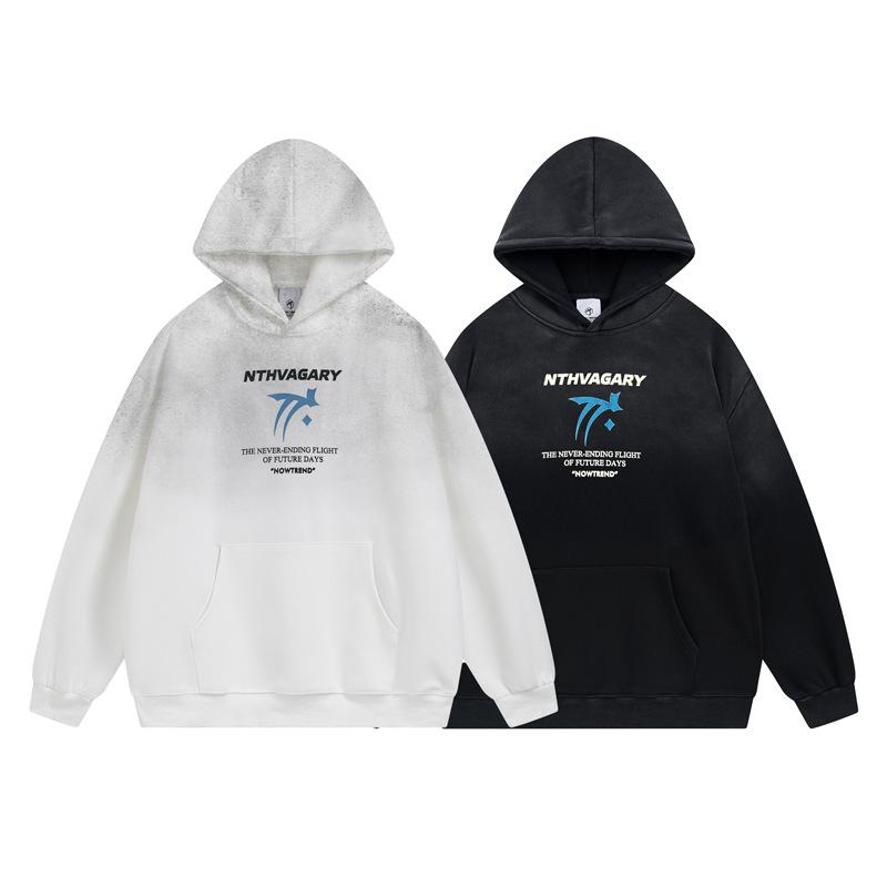 パーカー メンズ グラフィックロゴ グラデーション フード付き ゆったり オーバーサイズ プルオーバー 長袖 ウォッシュ加工 カジュアル スポーツ ストリート 綿 秋冬