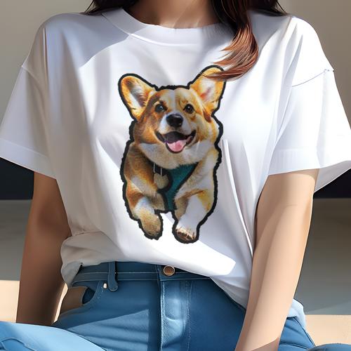 Tシャツ レディース 犬ファン 半袖 春夏 犬柄 プリント カジュアル かわいい 人間用 フィットネス ダンス ペット コーギー 笑顔 ハーネス