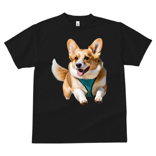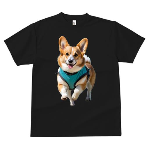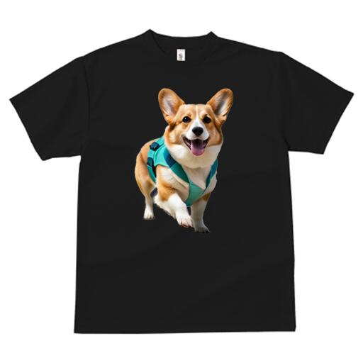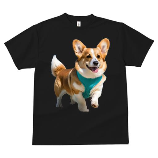 コーギー Tシャツ メンズ キッズ 犬ファン 半袖 春夏 犬柄 プリント カジュアル かわいい 人間用 個性派 ここだけのデザイン 面白 ペット コーギー ハーネス 笑顔