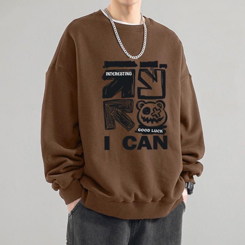 スウェット メンズ 男性用 秋冬 裏起毛 プリント プルオーバー ゆったり 浅灰色 ダークグレー バーガンディ ベージュ コーヒー色