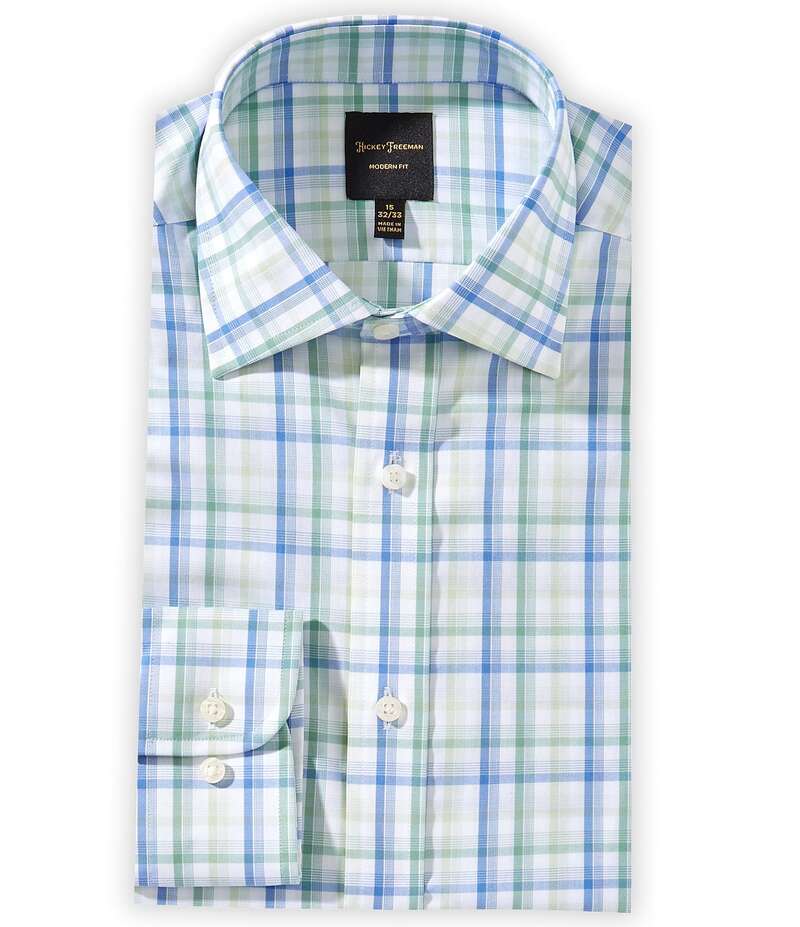 ヒッキーフリーマン メンズ トップス シャツ Medium Green Hickey Freeman Modern Fit Spread Collar Tonal-Plaid Dress Shirt