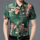 シャツ メンズ 中年 男性 父親向け 夏 半袖 花柄 開襟シャツ 薄手 接触冷感 カジュアル ポリエステル 綿混 レギュラーフィット 普段使い レジャー