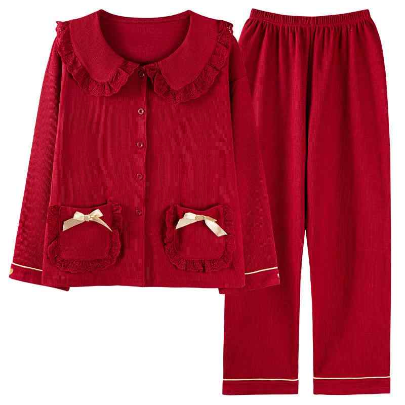 パジャマ レディース メンズ 長袖 ワッフル 全綿 コットン 襟付き ルームウェア 上下セット 部屋着 寝間着 ペア 秋冬