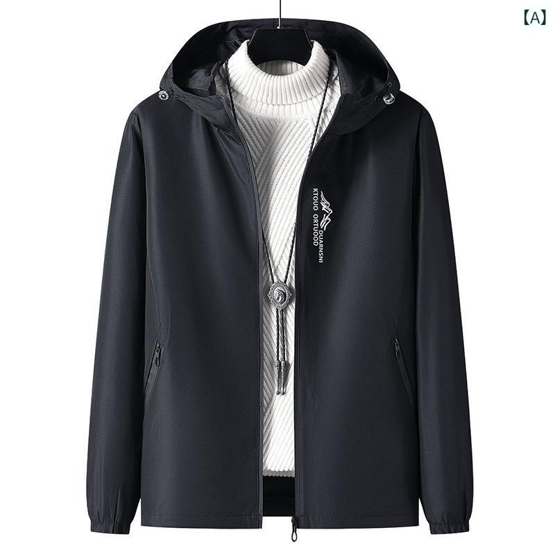 ジャケット メンズ 春秋 フード付き カジュアル スポーティー 防風 ウィンドブレーカー ゆったり 長袖 ジップアップ ポリエステル ルーズフィット スポーツシーン ビッグサイズ アウター