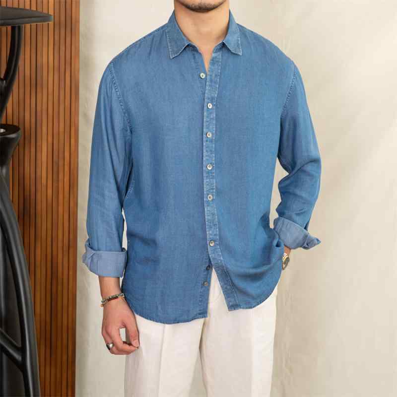 メンズ ファッション 春夏 秋冬 かっこいい オシャレ モテ 男性用 紳士服 服 韓国 テンセル ドレープ やや ワイド カジュアル デニム カラー 長袖 シャツ 初秋 通気性 男性用 シャツ