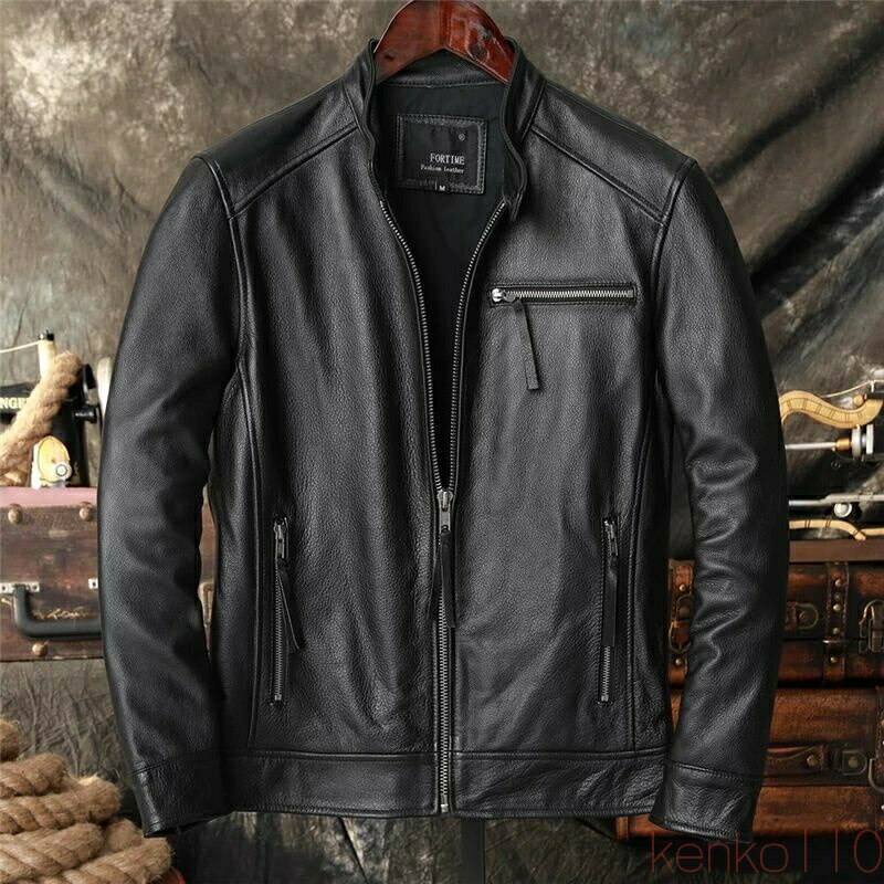 【送料無料】レザージャケット メンズ 本革 牛革 レザーコート スタンド襟 革ジャン バイクジャケット カジュアル ジャケット 秋 大きいサイズ ショート丈 ライダースジャケ