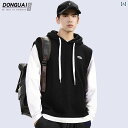 ジャケット パーカー メンズ フェイク ツーピース スウェットシャツ フード付き プルオーバー 大きいサイズ スプライシング 黒白 対照的 2色