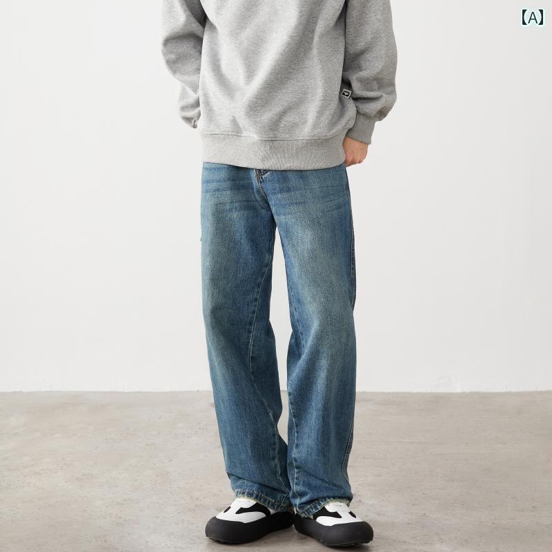 ストレート ジーンズ パンツ ストレート ジーンズ メンズ 春 2025 ゆったり シンプル レトロ ウォッシュ オールド モップ ワイド レッグ パンツ