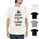 パロディー Tシャツ パロディTシャツ キープカルム アンド キャンプ アウト 半袖Tシャツ KEEP CALM AND CAMP OUT アウトドア メンズ レディース キッズ 大きいサイズ 白 黒 男女兼用 大きいサイズ おしゃれ S M L XL XXL XXXL 黒 白 JUST ジャスト 父の日