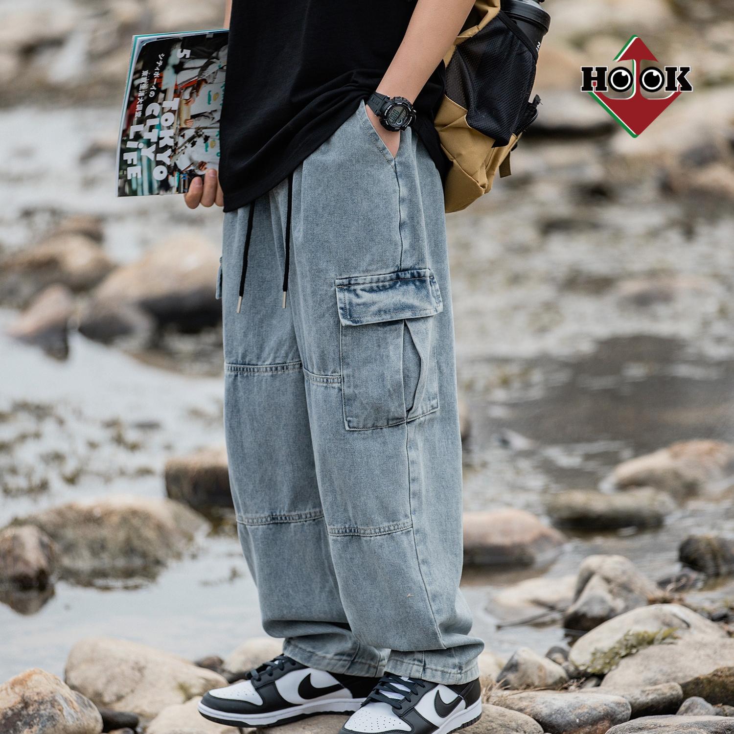 デニム ワイド パンツ メンズ カーゴパンツ 春 夏 秋 ワイドデニム ウォッシュ加工 デニム ビッグシルエット レディース オーバーサイズ ビッグボケット ユニセックス 韓国ライク オルチャン ストリート ワークパンツ 【HOOK】