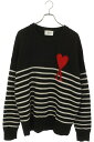 アミアレクサンドルマテュッシ AMI Alexandre Mattiussi サイズ:L UKS004.018 ハートAロゴウールボーダーニット(ブラック×ホワイト)【329052】【OM10】【メンズ】【中古】bb409#rinkan*B