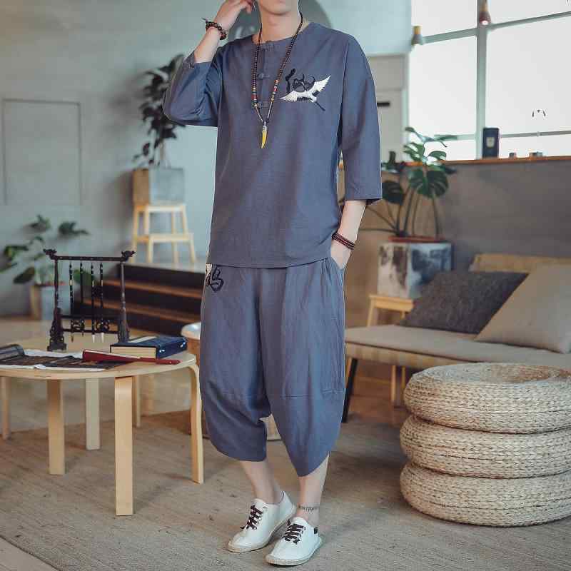 メンズ ファッション 服 男性用 オシャレ シンプル 大人 かっこいい 大きいサイズ ストリート 紳士服 夏 カジュアル スーツ アンクスタイル ボタン 半袖 T シャツ クロップドパンツ ツーピース セット