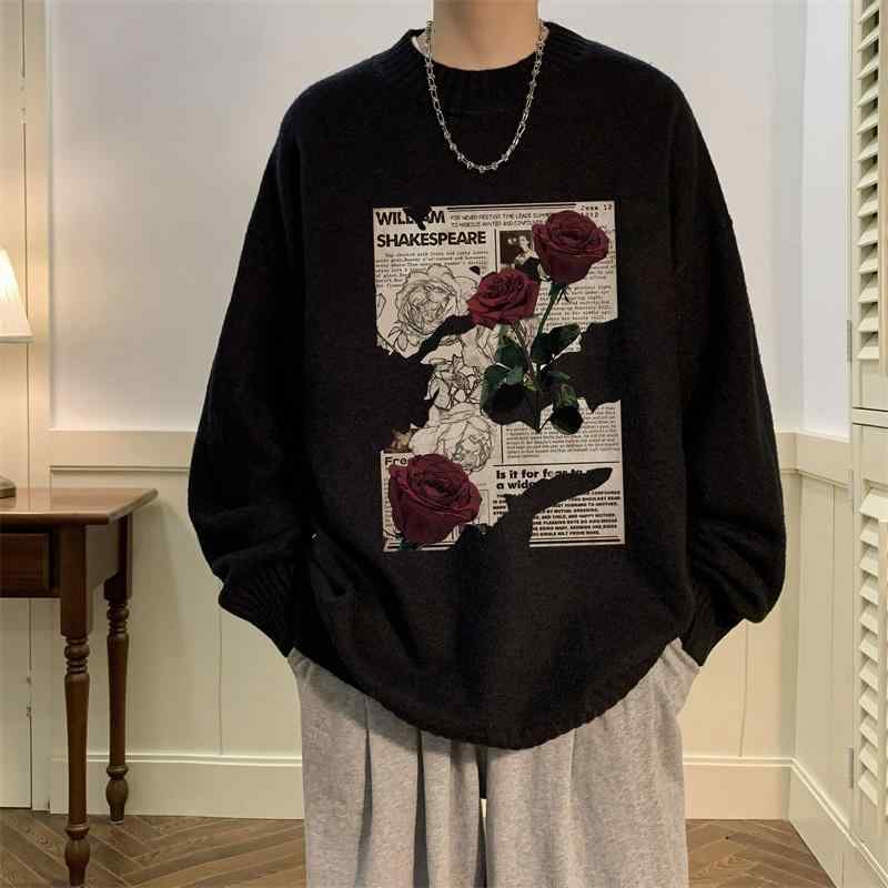 秋冬 コーデ メンズ 服 シンプル ファッション オシャレ 大人 かっこいい 大きいサイズ ストリート 紳士服 アメリカン ローズ セーター ベルベット レトロ ヒップ ホップ