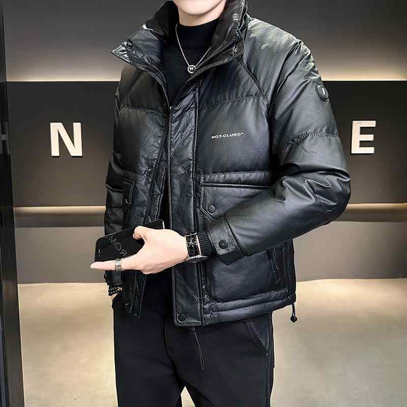 秋冬 コーデ メンズ 服 シンプル ファッション オシャレ 大人 かっこいい 大きいサイズ ストリート 紳士服 レザーダウン ジャケット 冬 ダック ダウン ジャケット