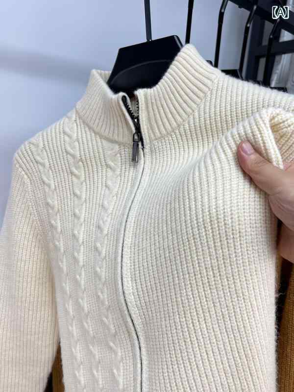 カーディガン メンズ ニット カジュアル おしゃれ 秋冬 大きめサイズ セーター スタンドカラー ジップアップ ツイスト ハイネック ジャケット 厚手 黒 オレンジ ホワイト