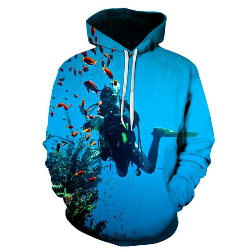 パーカー メンズ プルオーバー 長袖 立体貼りポケット 海底デザイン リアル3Dプリント カジュアル スポーツ ビッグシルエット 春秋 ポリエステル 普段使い