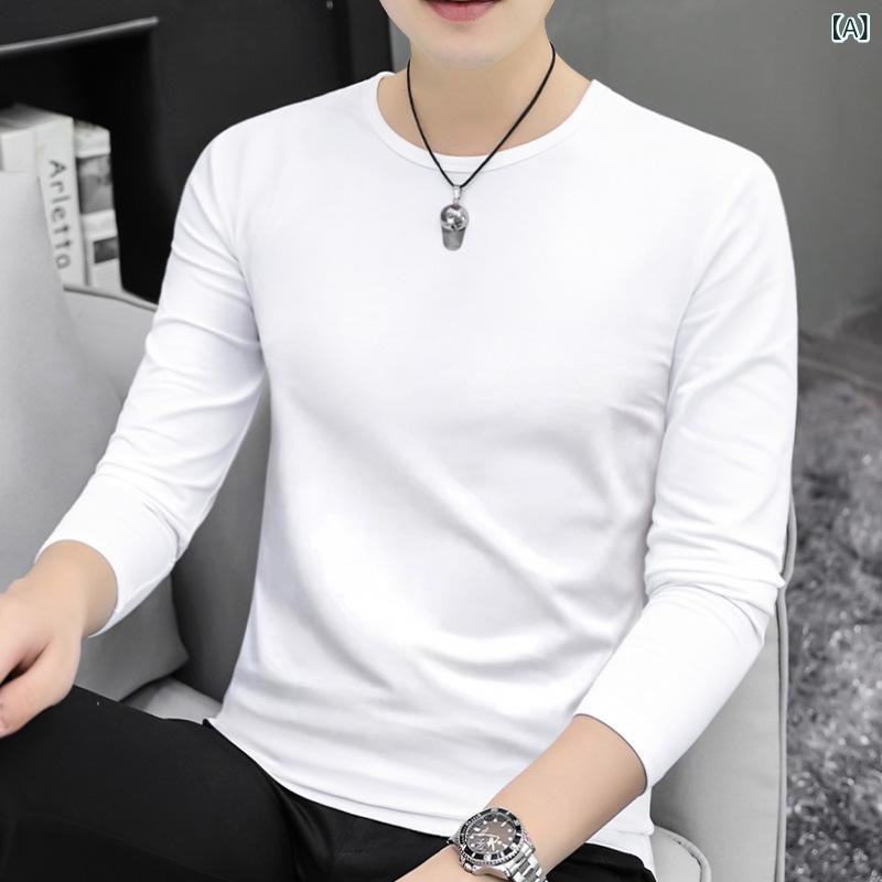 Tシャツ メンズ 長袖 コットン 無地 白 クルーネック インナー 秋冬 トップス カットソー カジュアル デイリーユース