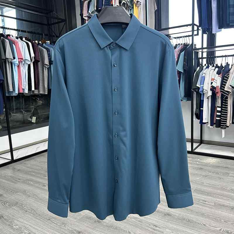 シャツ メンズ 男性用 長袖 形態安定 形状記憶 ポリエステル ビジネス カジュアル 修身 無地 薄手 ブルー(x5)